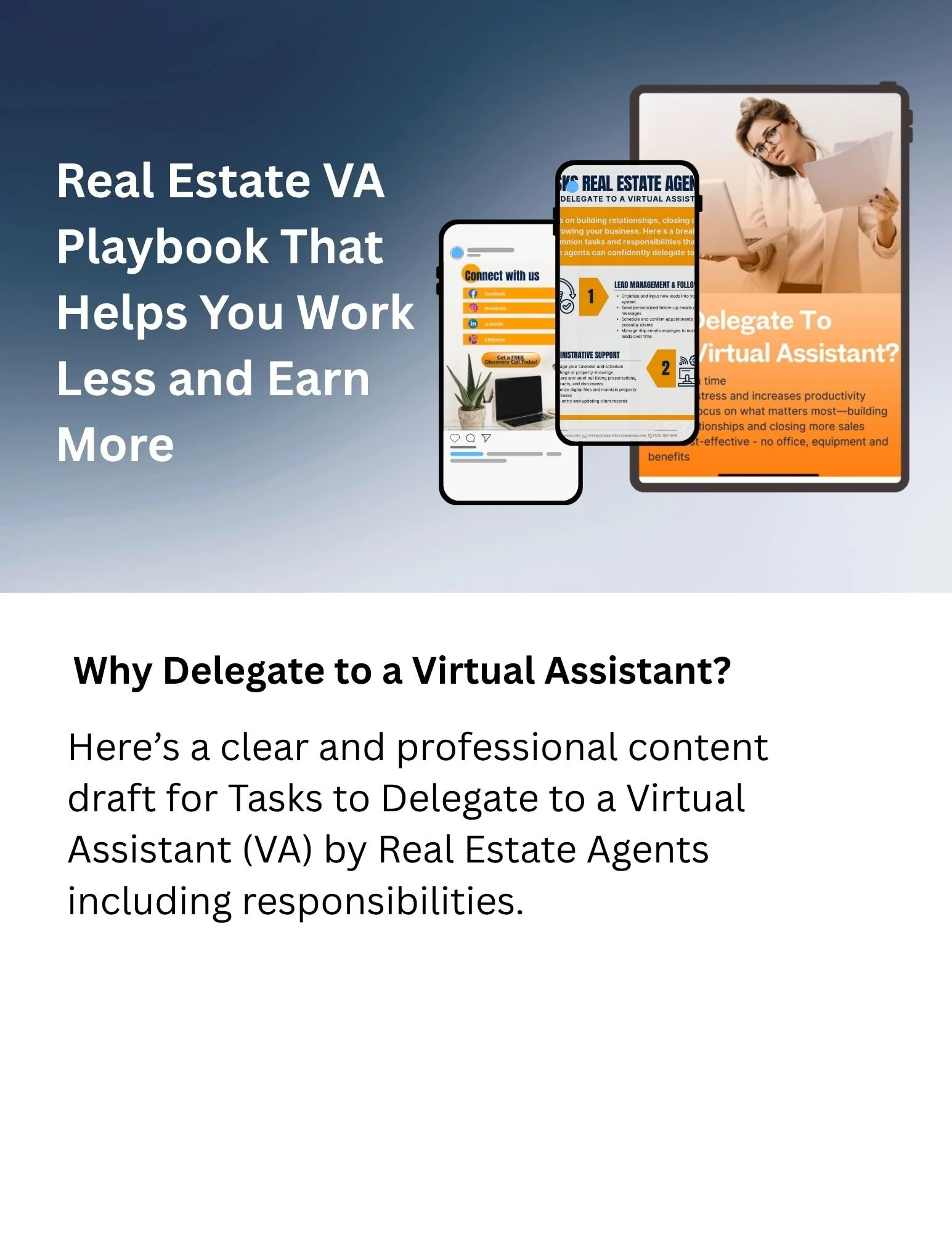 Download Now: Why Delegate to a Virtual Assistant? Get free access to a polished overview of how Real Estate Professionals can boost efficiency by outsourcing key duties to a Virtual Assistant (VA). First Name Last Name Email Address Download Free PDF You're all set! Thank you!